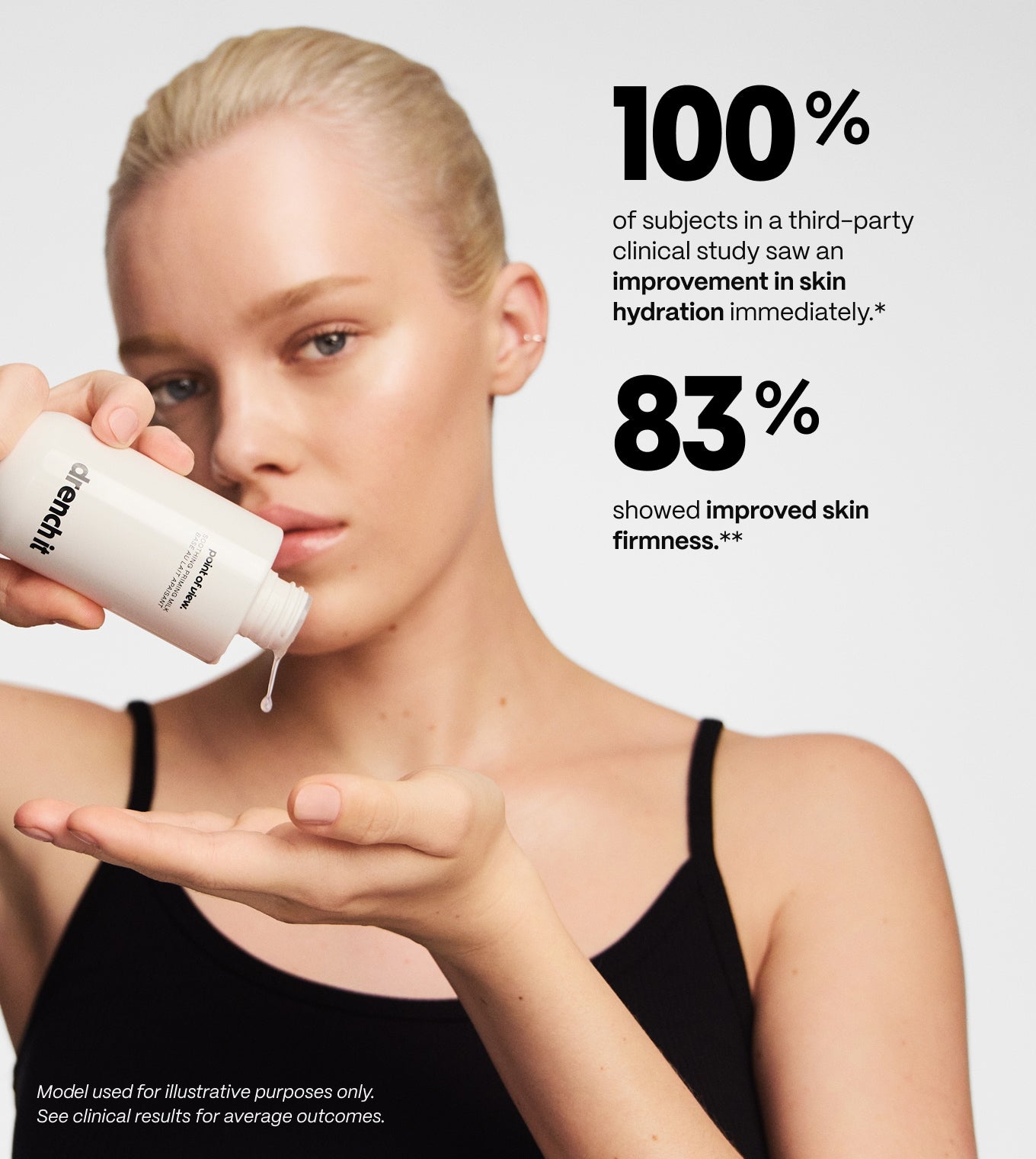**Based on instrumental measurement of skin firmness from baseline using a cutometer in a clinical study of 30 women after 2 weeks of use 1x a day.
